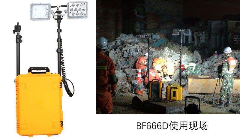 BF666D(FW6108)/WJ890C(SFW6121)/WJ880A-G(SFW6110B、GAD506A)等便捷式移動式多功能照明裝置。拉桿箱式設(shè)計(jì),可手提、拉動,即使在崎嶇坎坷的地方也可以方便攜帶,整體燈具裝卸快捷方便,可以快速展開中小范圍的救援照明使用。