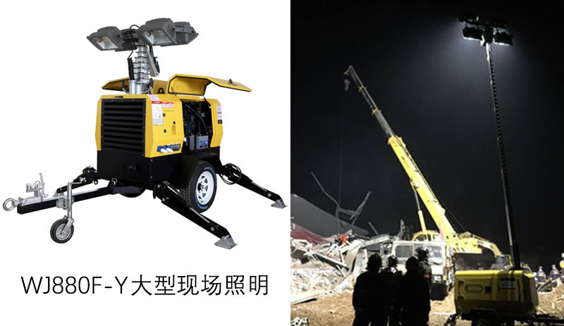 也可提供超大范圍晝夜連續(xù)作業(yè)的大型照明燈塔,WJ880F-Y全方位移動照明燈塔, 采用4 個(gè)1000 W 高效節(jié)能燈頭,照明亮度高,覆蓋范圍大.實(shí)現(xiàn)任意升降調(diào)節(jié),最大升可起高度為10 米,燈光覆蓋整個(gè)工作現(xiàn)場以確保各種救援場景的照明保障能力。