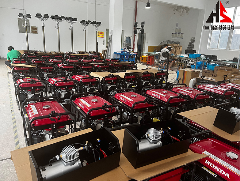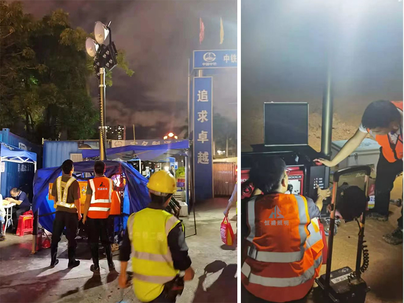 移動照明燈組又叫全方位自動升降泛光工作燈、多功能升降照明燈塔或者自發電式移動照明燈組等,采用模塊化設計,由高速移動底盤、靜音機組、高強度升降桿和照明燈組成,高效能LED兩支或四支燈頭交錯照射,360度全景照明,可高達幾萬流明的強光,推車式發電機組、超長使用時間;專用防護箱可防止水分、粉塵、溫度及撞擊等給儀器設備帶來的破壞,功能強大的應急、救援、照明產品。下面恒盛照明帶大家詳細了解升降式移動照明燈組。